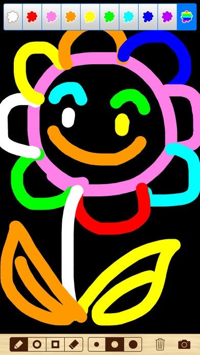 描ける色は9色から選んだりランダムに色を変えたりできるからカラフルな絵が描ける