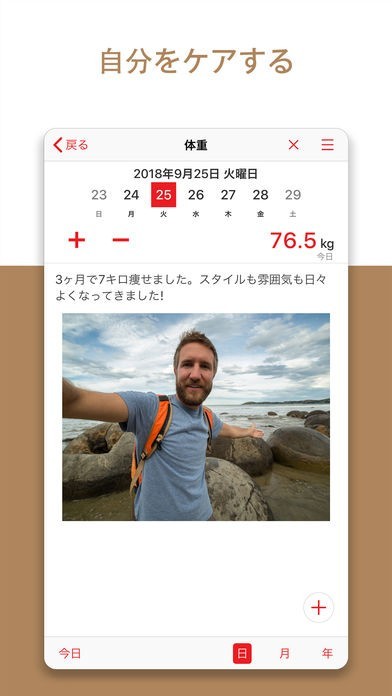 摂取したカロリーや運動した時間を登録出来るようになっています。また「やることリスト」に予定やタスクを追加する事が可能なので、スケジュールの管理をしたい時にも役立ちます。