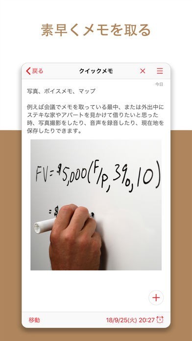 「クイックメモ」が用意されているので、アイディアや出来事を素早く保存出来るようになっています。さらにリマインダー機能があるので、複数の予定も分かりやすく管理していけます。