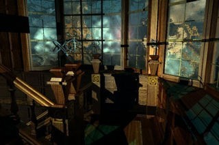 当時としてもかなり良質なグラフィックで独特の世界観を見せたMyst。アプリ用にヒント機能で難易度を下げて遊びやすくしている。