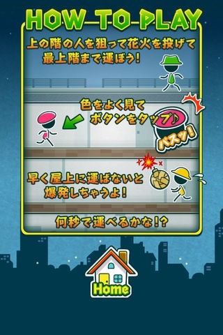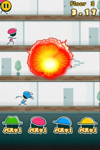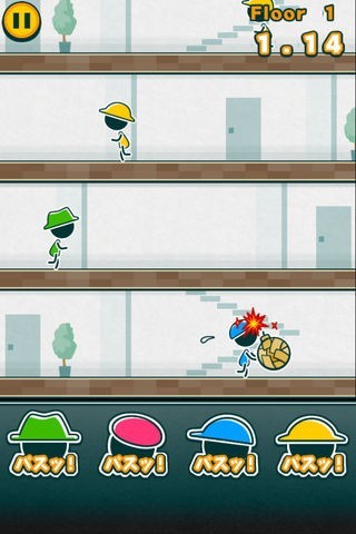 上の階にいる人と同じ色をタップして、どんどん投げて屋上を目指せ!