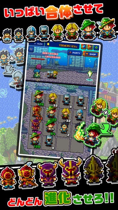 どこか懐かしく童心に帰らせてくれるアニメーションが好きです。画面をスワイプして同じ勇者を合体させるだけの簡単さも気軽に遊べます。