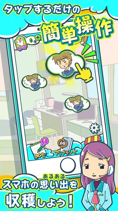 スマートフォンの人工知能スマコとなって、スマートフォンからガラケーに変えようとしているご主人様との思い出を集めるほんわか系ゲームアプリが「えっ、スマホやめるんですか?」です。画面の様々なところをタップすることでスマートフォンとご主人様の思い出を収集することができるようになっていて、誰もが覚えがあるようなあるあるな思い出にほんわかしてしまうゲームとなっています。スマコをアップデートすることで思い出の収集力をアップさせることができます。