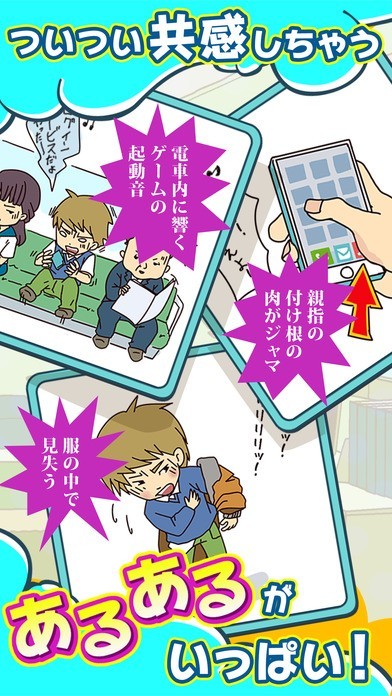 誰にでも経験があるスマートフォンとのあるあるを楽しめる!