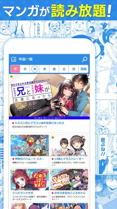 毎日毎曜日違ったマンガが更新され、ジャンルも様々です。少しだけ読みたい方、一気に読みたい方それぞれのニーズに合わせた購読の方法がえらべます。また、掲載作品のジャンルも多種多様なため全ての人が満足できます。