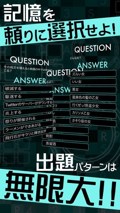 一つの問題に対して表示される選択肢の数は7種類です。通常なら4種類の選択肢が表示されるところ、ほぼ二倍に近い数の選択肢が表示されるため大幅に難易度が上がっています。