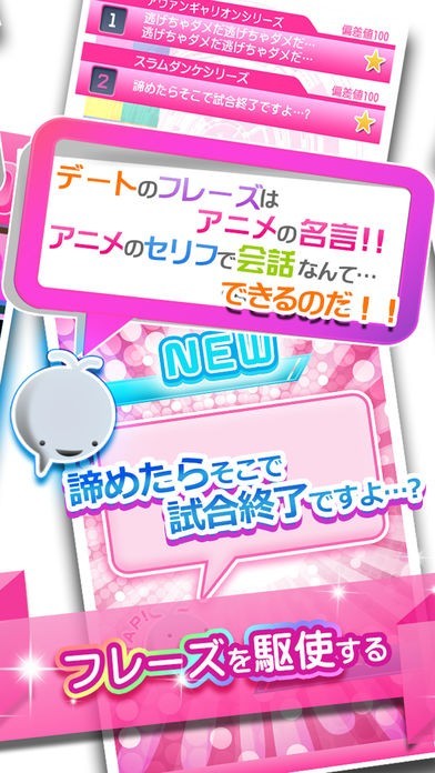 メッセージの愛情度が高まって基準を超えると、彼女とのデートチャンスを獲得できます。デートでは、アニメの有名な名セリフを上手に駆使して彼女にどんどん甘い言葉を送りましょう。