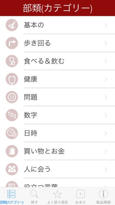 分かりにくかったり、難しいフレーズでも、実際の発音を聴きながら覚えることが出来るようになっています。細かくカテゴリーが分かれているので、学習しやすいのも特徴です。