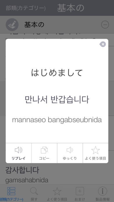 良く使う子フレーズや気になるフレーズは「お気に入り」に登録しておくことでいつでも取り出すことが出来ます。ど忘れしちゃった時などにも、お気に入りに登録しておけばフレーズが言えなくて困る、なんてこともなくなります。