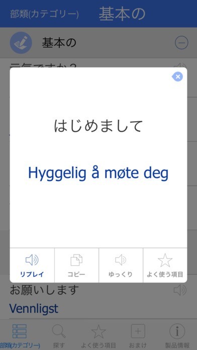 覚えようとしてもなかなか覚えられないような難しいフレーズは、「お気に入り機能」に登録しておくことが出来ます。復習したい時には検索無しで素早く取り出すことが出来るので、とても便利な機能となっています。
