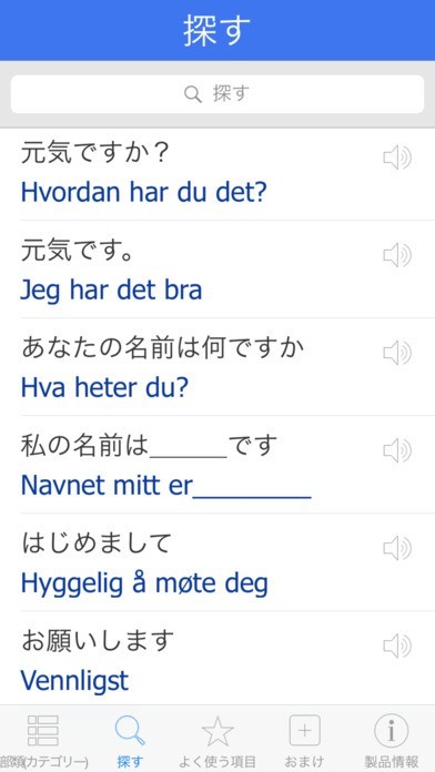 ノルウェー語でフレーズが表記されているだけでなく、発音用文字も併記されていて、音声でネイティブの発音も確認できるので、スピーキングやリスニングを鍛えることも可能です。