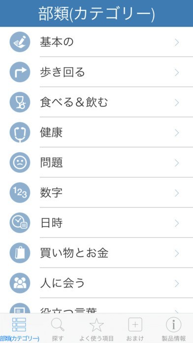- どのシチュエーションにも対応できるよう、道案内、飲食、ヘルス、困り事、数、日時、面会、ショッピング、お金など、さまざまなカテゴリーをご用意。最高の海外旅行辞書アプリです。
