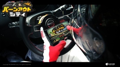 画面左右にはハンドルボタンを表示。タイミングよくタップして車両を操作しよう!