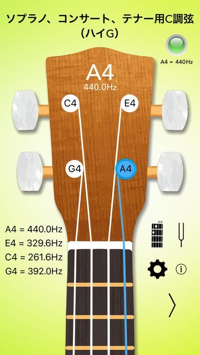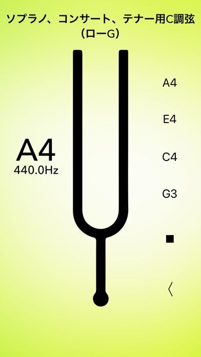 「ウクレレチューナーベーシック」はウクレレの調弦が行えますが、一口にウクレレといってもソプラノやテナーなど様々な種類が存在します。そのすべてのウクレレに対応しているのが優れているポイントです。