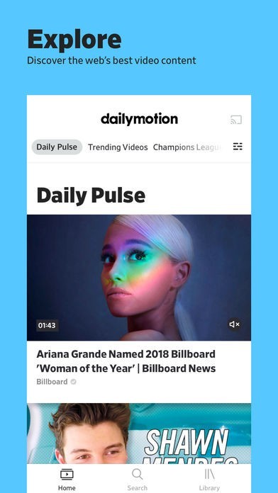 『Dailymotion - 動画の鑑賞と共有』は、YouTubeに次ぐ巨大動画サイトであるDailymotionをスマートフォンで楽しむことができるアプリです。 音楽からニュース、文化、エンターテインメントと動画のジャンルは幅広く、投稿者も一般人からプロまで多彩、その数はとても豊富です。 過去の視聴履歴を参考に提示されるお勧め機能を用いることで、膨大な数にのぼる動画の中から自分に合ったまだ見ぬ新しい動画を見つけることができます。