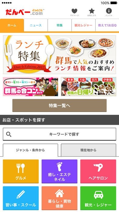 お店情報の他にも、イベント・映画・観光等の生活情報も充実しています。群馬を楽しむためのアプリです。