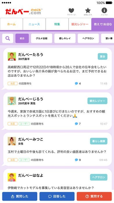 群馬のお店やおでかけに関する質問を、お店・スポットや他のユーザーに気軽に聞けて、回答が来れば通知ですぐに気づけます。