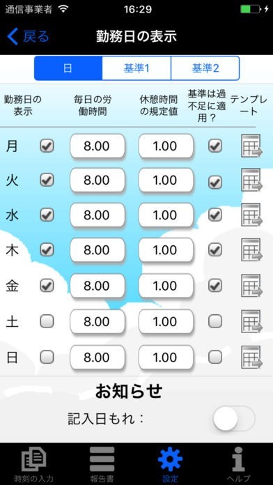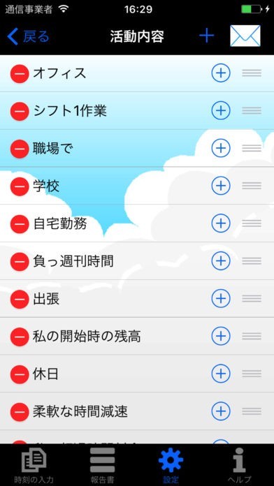 本アプリはオフラインでも使えるので、いつでもどこでもあなたの iPhone から入力や更新ができ、残業時間の合計やあなたが入力した履歴を見ることができます。さらにこのデータをエクスポートして分析したり、会社に提出したり、またバックアップを作成してそのデータをiPhoneとiPad間で交換することだってできます。ほんの少しの操作で設定メニューからお好みの設定(デフォルトの勤務時間、活動内容、お知らせ機能等)を選ぶことができます。