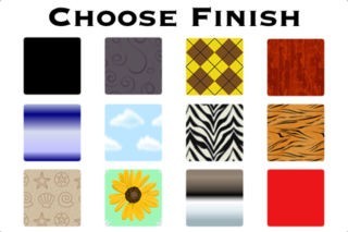 気分によってピアノの見栄えをいろいろ変えて楽しむことができます。木目調やチェック模様、金属質、ひまわり柄、赤のモノトーンなど、10種以上の見栄えが用意されています。