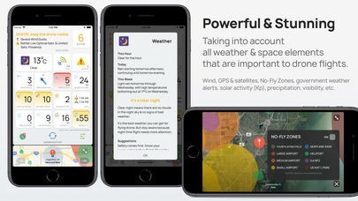 We take into account all weather & space elements that are important to drone flights (such as wind, GPS & satellites, No-Fly Zones, solar activity, etc.) and put them all together on a WELL DESIGNED INTERFACE. This makes it easier to view all the critical information in a single view, without having to navigate around to different pages.