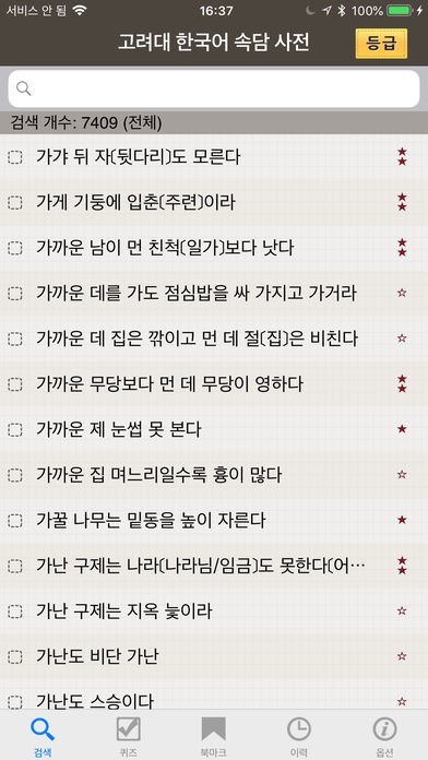 • 등급별로 제시된 퀴즈를 풀어 보면서 자신의 속담 실력 확인.