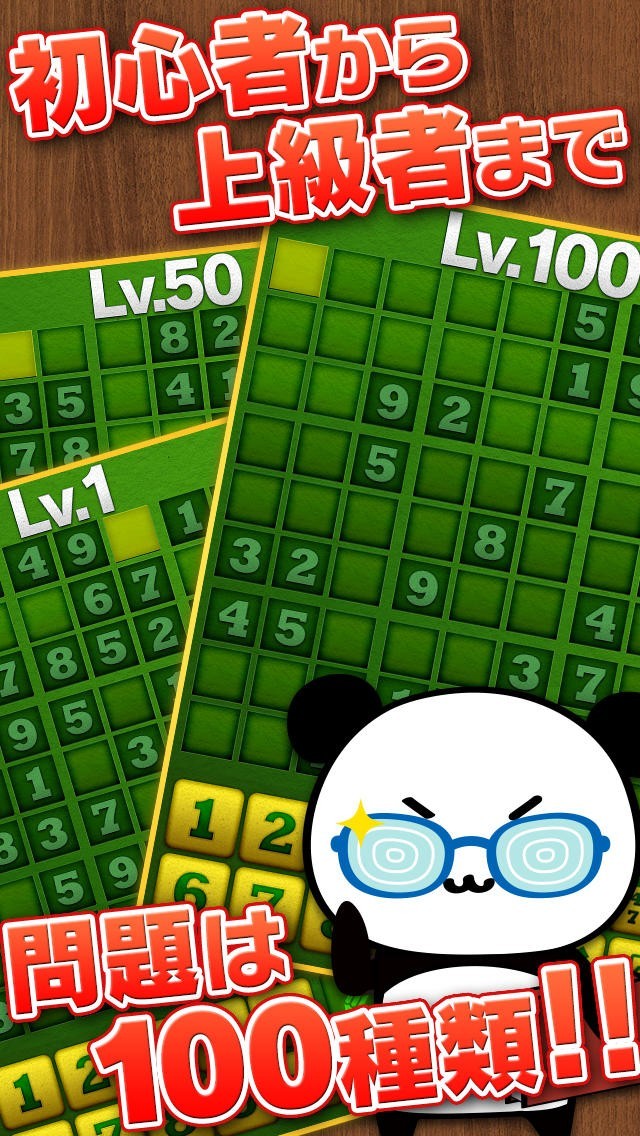 可愛いぱんだのキャラクターだーぱんが、ナンプレアプリとしても登場。「ナンプレLv100 by だーぱん」はだーぱんと一緒にナンプレが楽しめるアプリとなっています。だーぱんと一緒にステージをクリアしていけば、あっという間にナンプレに嵌れること間違いなし。セーブ機能付きだから、通勤などの暇つぶしにも最適です。電車が来たらさっとセーブして、また暇な時間に再開することができるようになっています。メモ機能などの、プレイに嬉しい機能も満載!
