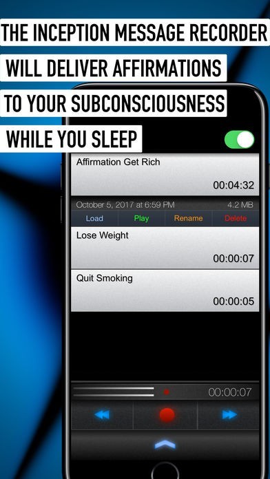 - Voice recording of messages for inception into your subconsciousness and dreams