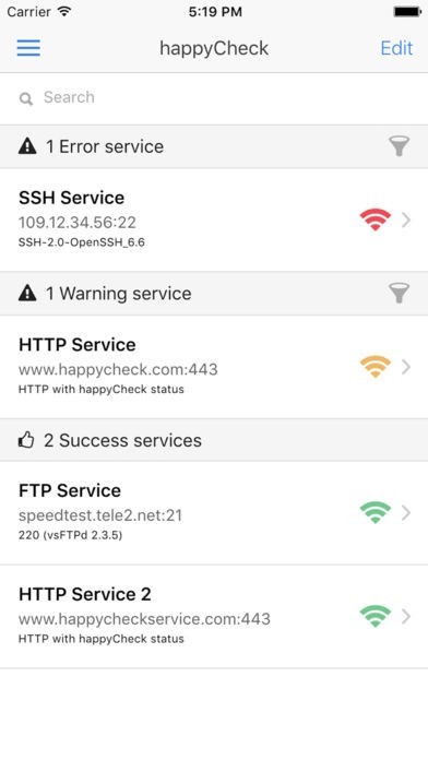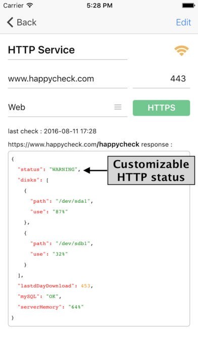 App Storeより引用With happyCheck, you can check your HTTP services, FTP, SSH ...