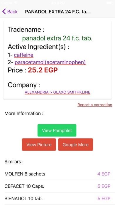 App Storeより引用Type the drug name or one of its info at the search bar and instantly search results will appear for it...