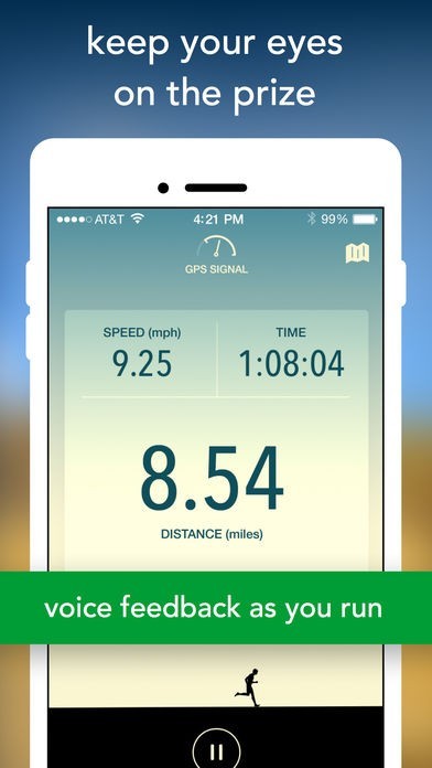Don't want to look at the screen every few minutes? You can have the app tell you updates on your progress in set distance and/or time intervals.