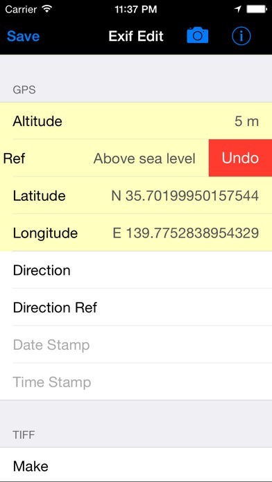 写真データにはExif情報という撮影場所や撮影日時を記録したデータが自動的に付与されてしまいます。そんなExif情報を編集できるようになるのがこのアプリなのです。写真を公開する際に居場所を知られたくないなら編集して消しておくと良いでしょう。