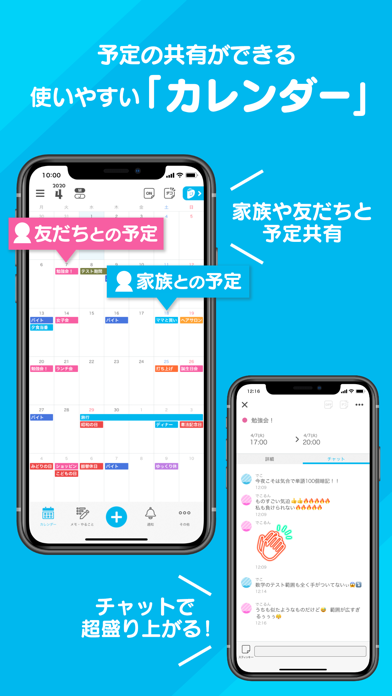 仕事や学校で忙しい毎日の予定を、DecoLuで便利にスケジュール管理。家族や友だちと一緒に使えば、簡単に予定の共有もできるし、チャットで話せば超盛り上がる!