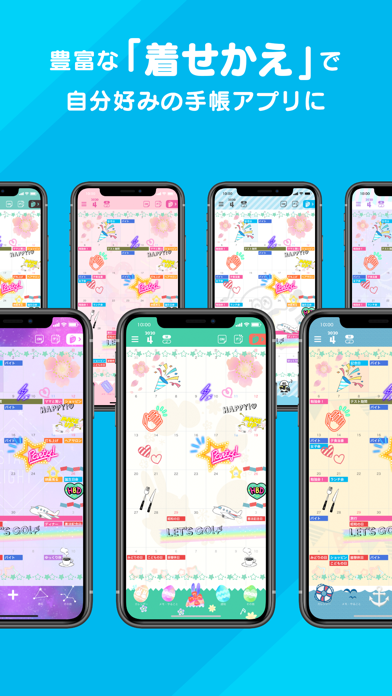 ●豊富な「着せかえ」で自分好みの手帳アプリに