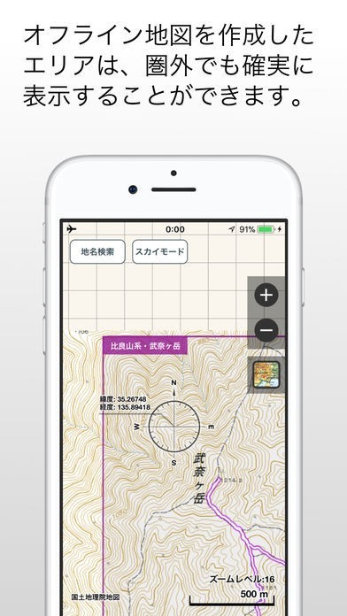 登山では圏外になるのが当たり前ですので、オフラインに強い機能が充実しています。地図はダウンロードできGPSは圏外でも動作します。情報の共有もできますので、非常時の合流にも心強いです。