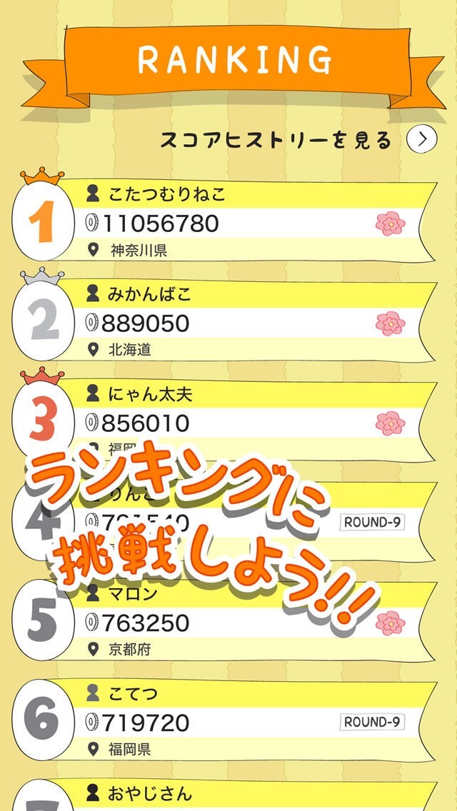 ランキングでほかのユーザーと競い合える