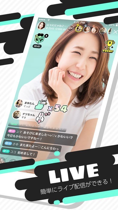 仕事や学校が終わって一人で暇な時間は、ライブ配信を使って皆でワイワイ楽しもう!操作方法は簡単で、配信者としても閲覧者としても楽しめます!Twitter等のSNSと連携が簡単に出来るので、チャンネルを閲覧している人に、簡単に自分の事を理解して貰う事が出来ます。ランキングやギフト機能もあるので、長く楽しめるライブ配信アプリです。