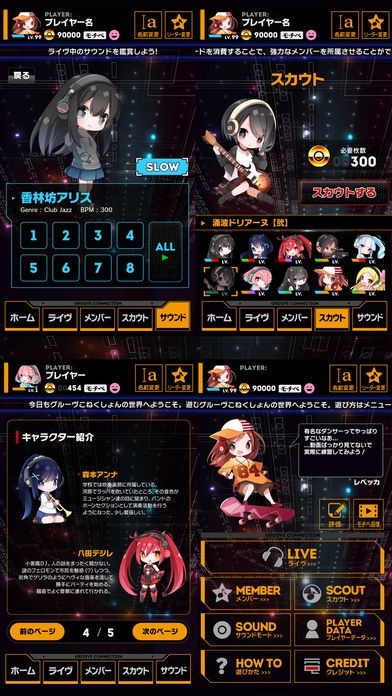 個性的なメンバー達をライヴで成長させ、己のヒキと戦略でハイスコアを狙え!