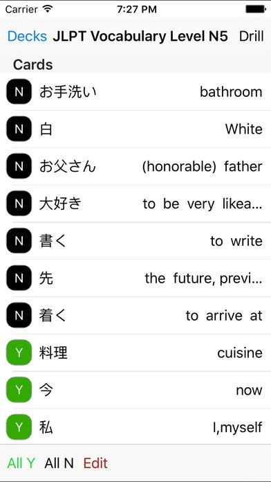 1000 JLPT Flash Cards for Japaneseのスクリーンショット
