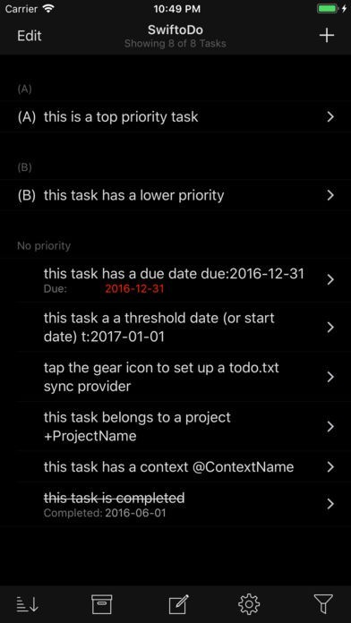 SwiftoDo for todo.txtのスクリーンショット