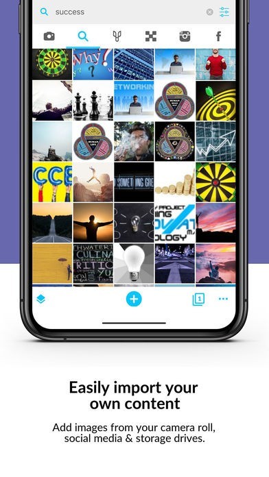 あなたの独自の画像をインポートする:カメラロール、ソーシャルメディア&ストレージドライブからコンテンツを追加します。