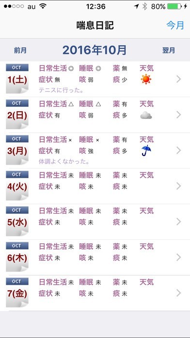 ぜんそく日記のスクリーンショット