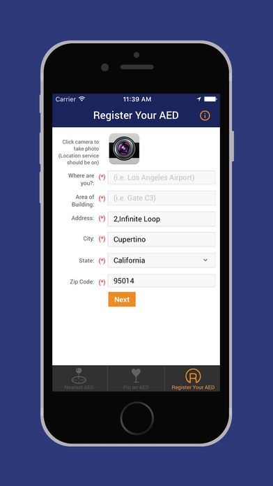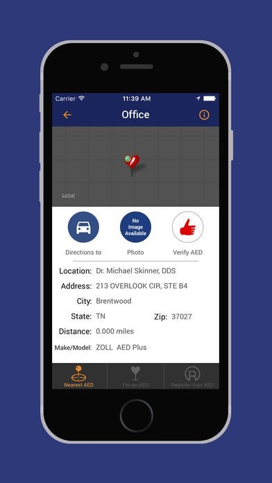 App Storeより引用AED Registry will automatically locate the nearest AED (Automatic External Defibrillator) to your location with details and directions, and also other AEDs within a 2-mile radius. AEDs are identified with various degrees of confidence to know which AEDs are ready to save a life.