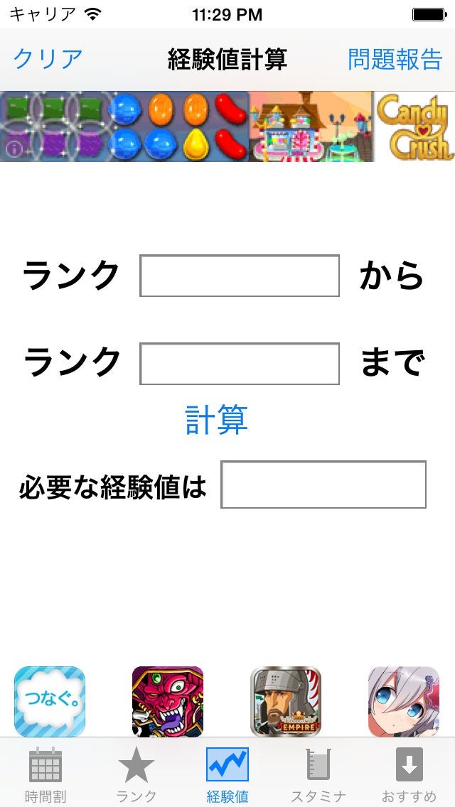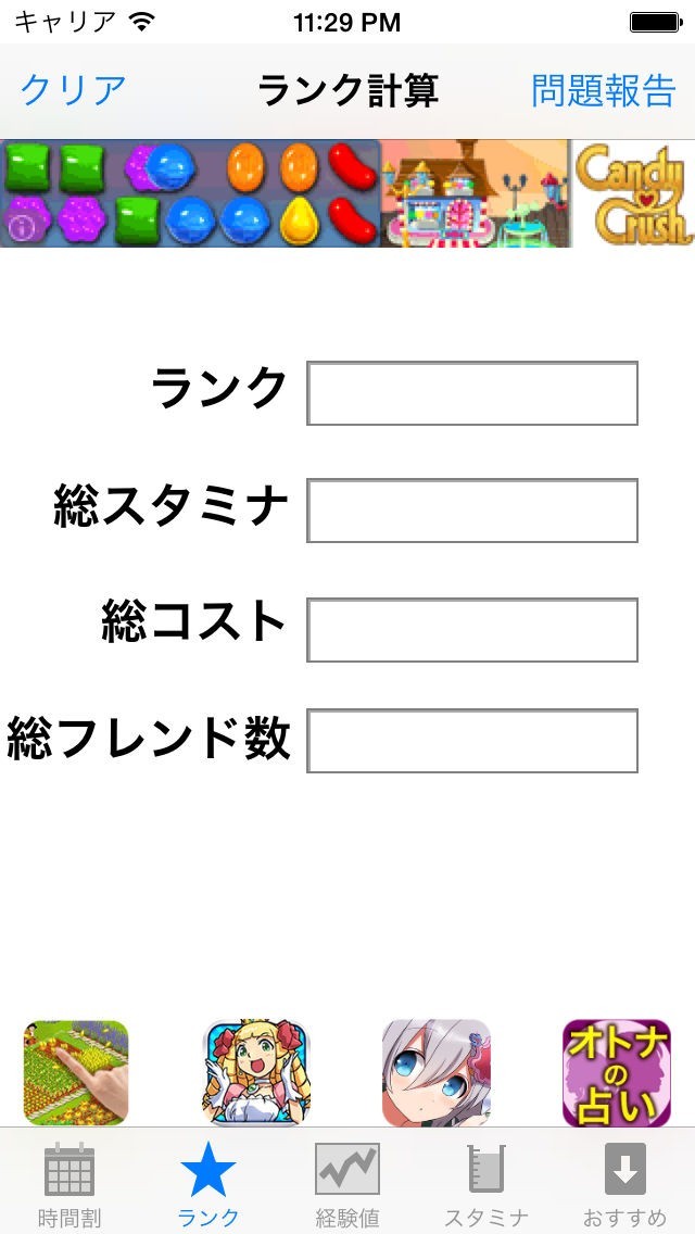 ランク、総スタミナ、総コスト、総フレンド数の何れかを設定してください。計算結果が表示されます
