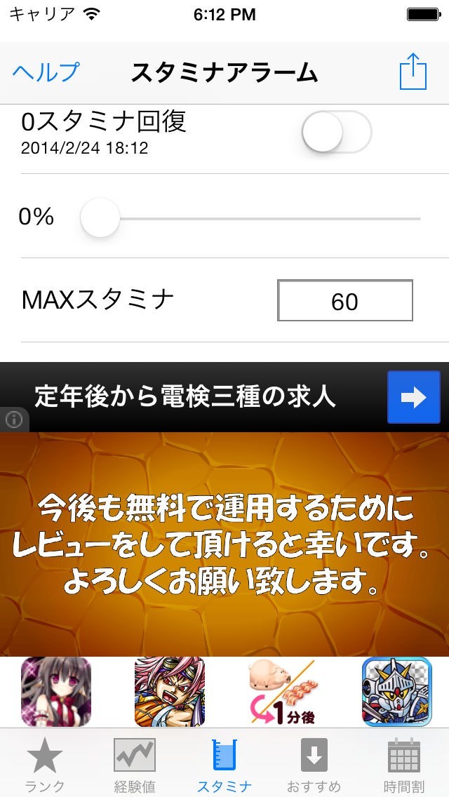 入力したMAXスタミナを最大値として、回復状況を通知してほしい数値を設定できます。