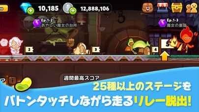 個性あふれるクッキーやペットを集めることができるランアクションゲームアプリが「クッキーラン : オーブンブレイク」です。魔女のオーブンから逃げるためにタップ操作でのジャンプやスライド操作でクッキーたちを移動させることで障害物や敵キャラクターから逃げ続けるゲームとなっていて、約120種類のクッキーとペットを集めてコレクションすることができるようになっています。リレー脱出モードや競技モードなど多彩なモードが搭載されています。