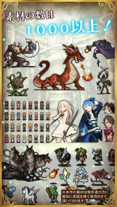 キャラクターアイコンといったゲームの中で使える素材が1000以上用意