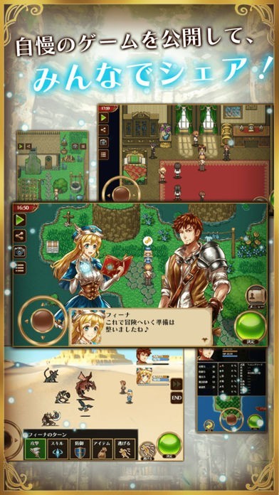 初心者の自分がRPGゲームの作者に!? いろんなゲームが好きでたくさんプレイしたけど、最近自分に合うゲームが見つからない‥。 課金ゲームばっかりでつまらない。 そんな人におすすめなのがこのアプリ! 初心者でも手軽に始められる「かんたん設定」や他のユーザーの作品をアレンジする「改変機能」で気軽に自分好みのゲームがプレイできちゃいます。 もちろん、自分で1からゲームを作ってみたいという方や上級者も満足の細かいデーやたイベントの設定、キャラクターアイコン素材も充実しています。 ユーザー投稿のゲームも現時点で4000点ほどあり、それらも全て無料でプレイすることができるので、今までと違ったゲームをプレイしたいあなたにもぴったりです。