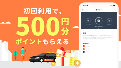 新規ユーザー登録をすると、タクシーでの料金支払いに使えるクーポンが手に入る