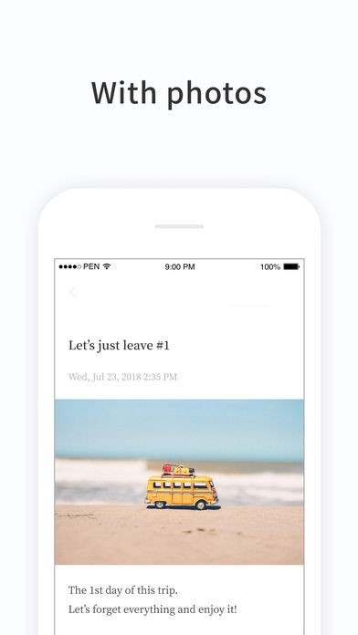 シンプルなデザインで写真を追加しることもでき、日記をつけます。