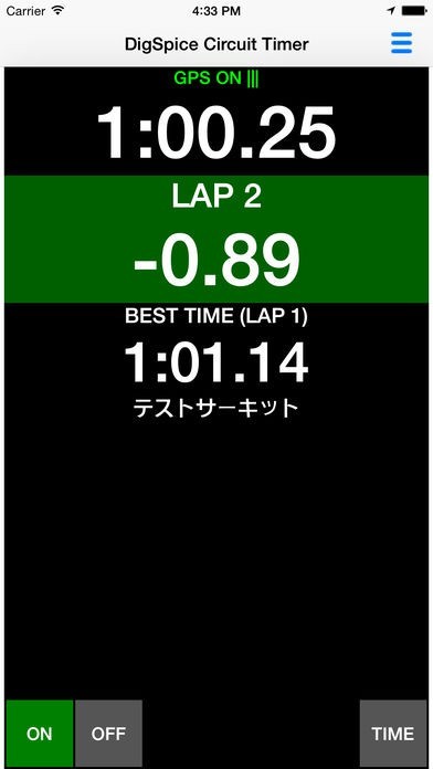 ONにするとGPS位置情報から自動でサーキットを判別しタイム計測します。